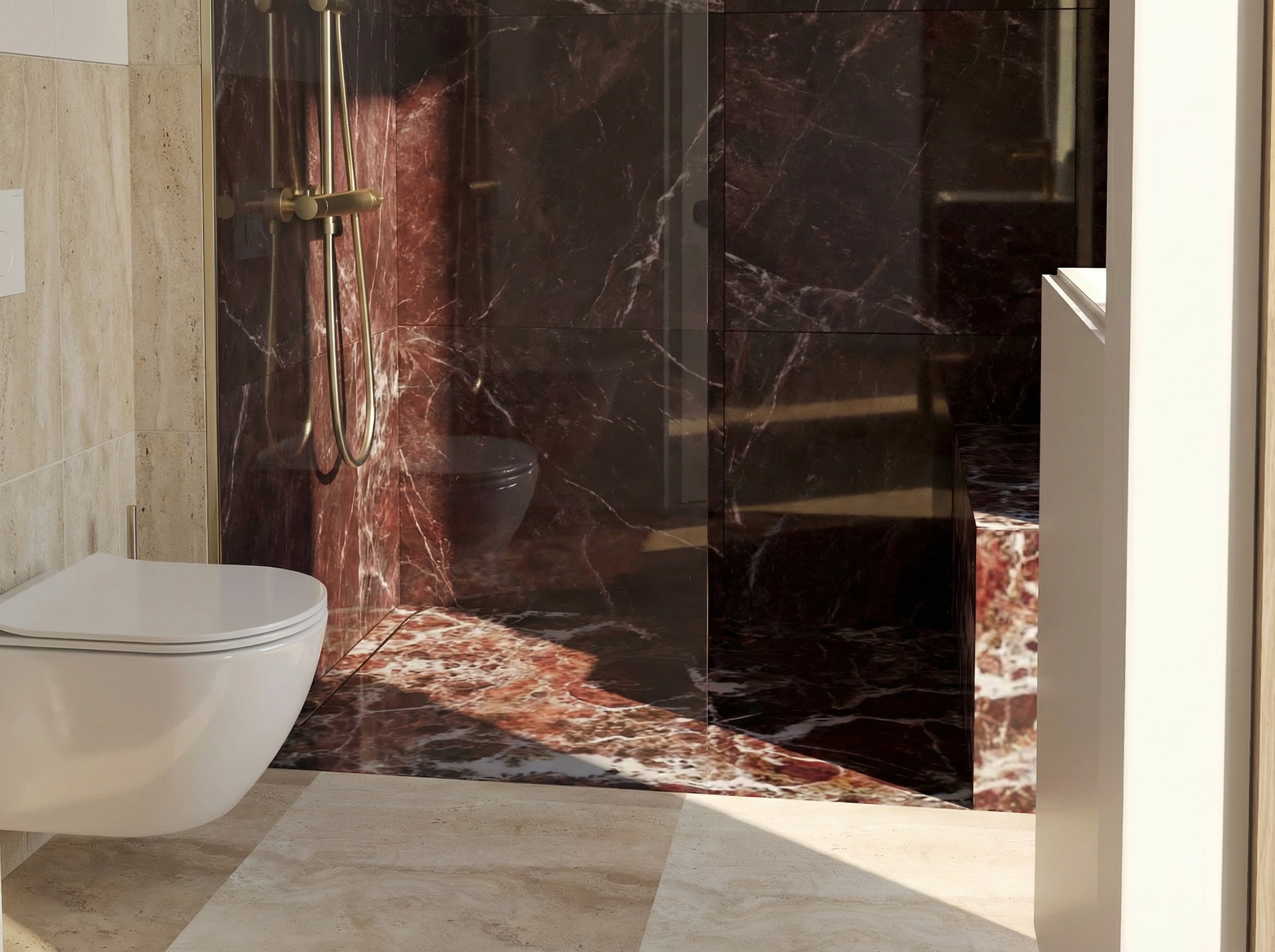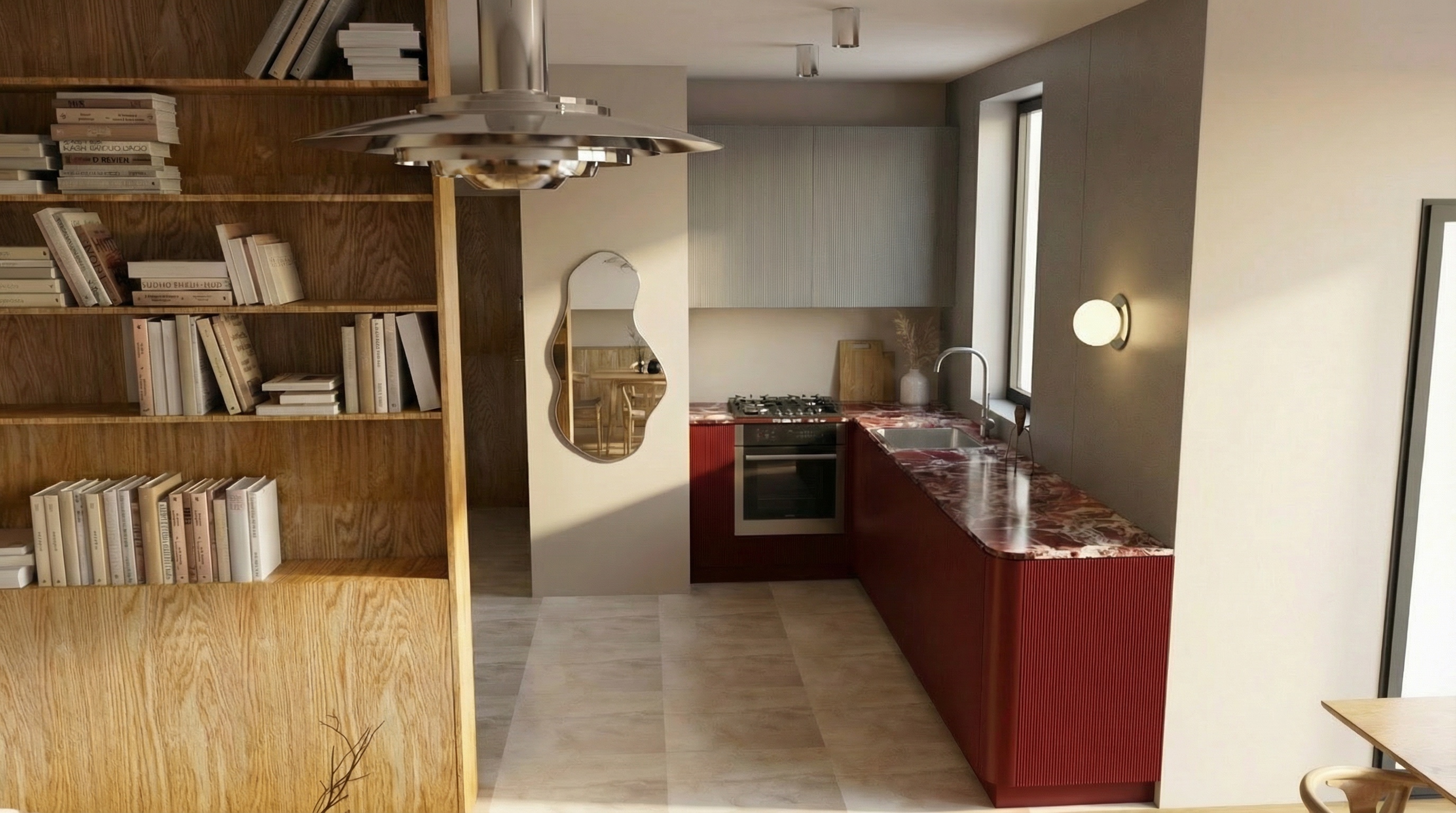 Mieszkanie w stanie deweloperskim mieści się w zacisznej okolicy górnego Sopotu, tuż przy granicy lasu. Właścicielce zależało na jasnych i harmonijnych wnętrzach, które zostały urozmaicone aneksem kuchennym i łazienką w kolorze czerwonego wina. Pralka została przeniesiona z łazienki, w której musiałaby stać niezabudowana, co przeszkadzałoby w uzyskaniu harmonijnej estetyki. Została przeniesiona do części gospodarczej szafy w hallu.